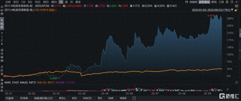 若要评选今年港股市场中表现最突出的板块,创新药无疑占据一席之地。在政策暖风持续吹拂下炒股加杆杆的平台,港股18A公司整体走势强劲。根据WIND数据,截至2025年9月22日收盘,君圣泰医药(2511.HK)年内累计涨幅超过233.07%,成为市场中一道亮眼的风景线。